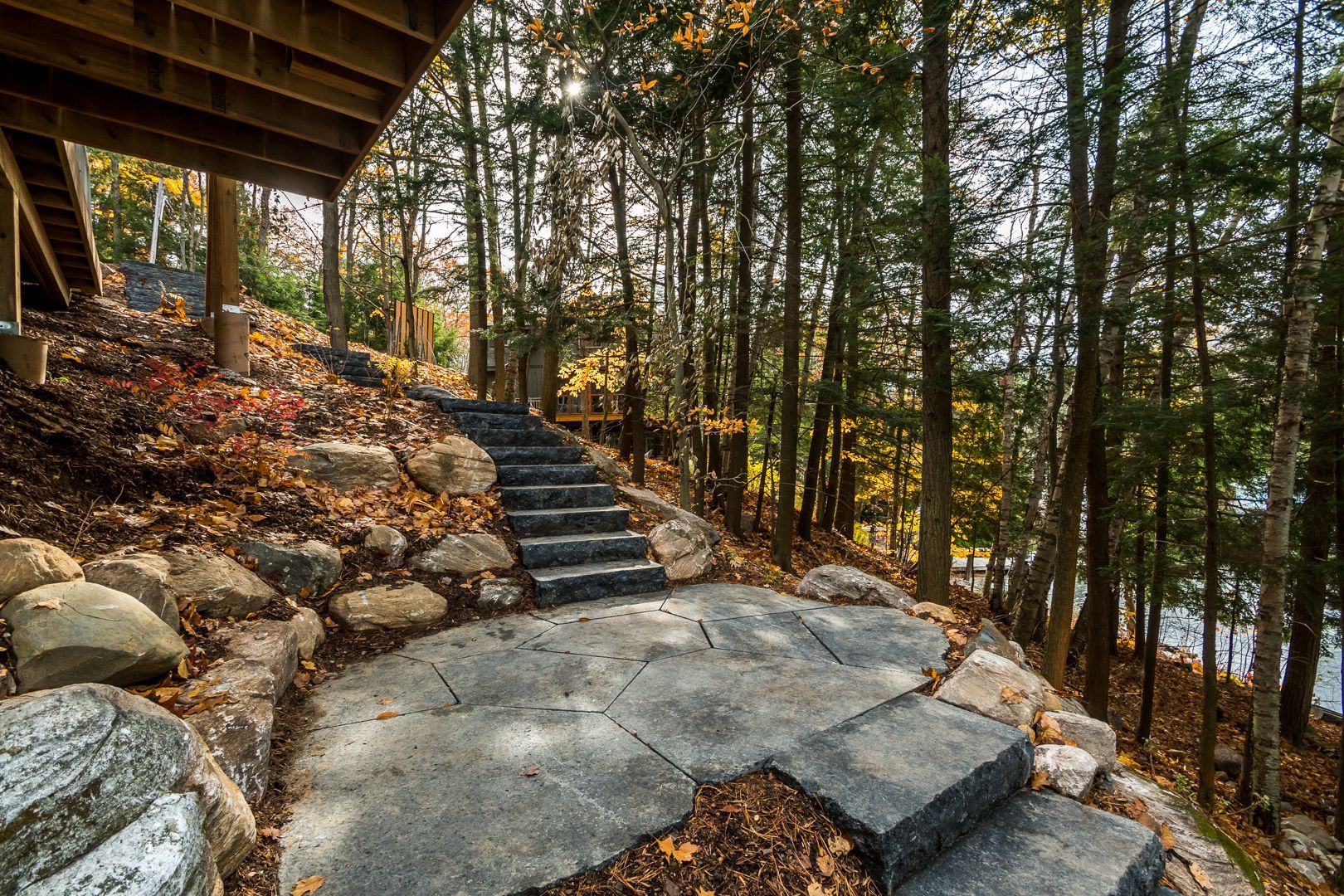 Dana Black Natural Flagstone is a bold, durable stone quarried in Ontario, prized for its rich color and clean texture. This premium flagstone is ideal for patios, walkways, and pool areas, it adds a dramatic and contemporary touch to outdoor spaces. With a non-slip surface and resistance to weathering, it performs reliably in all climates and complements both traditional and modern designs.