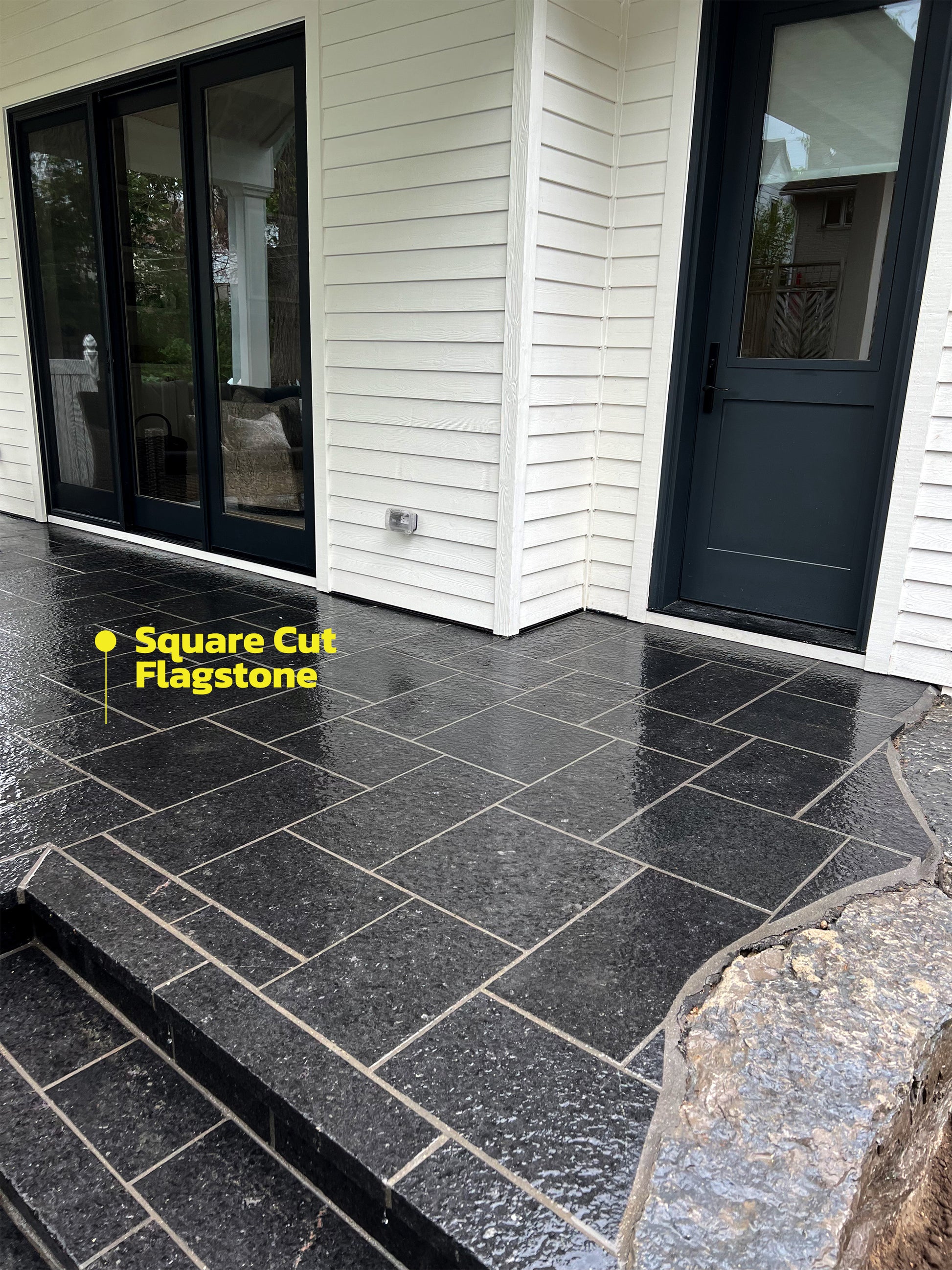 Dana Black Square Cut Flagstone is a bold, durable stone quarried in Ontario, prized for its rich color and clean texture. This premium flagstone is ideal for patios, walkways, and pool areas, it adds a dramatic and contemporary touch to outdoor spaces. With a non-slip surface and resistance to weathering, it performs reliably in all climates and complements both traditional and modern designs.